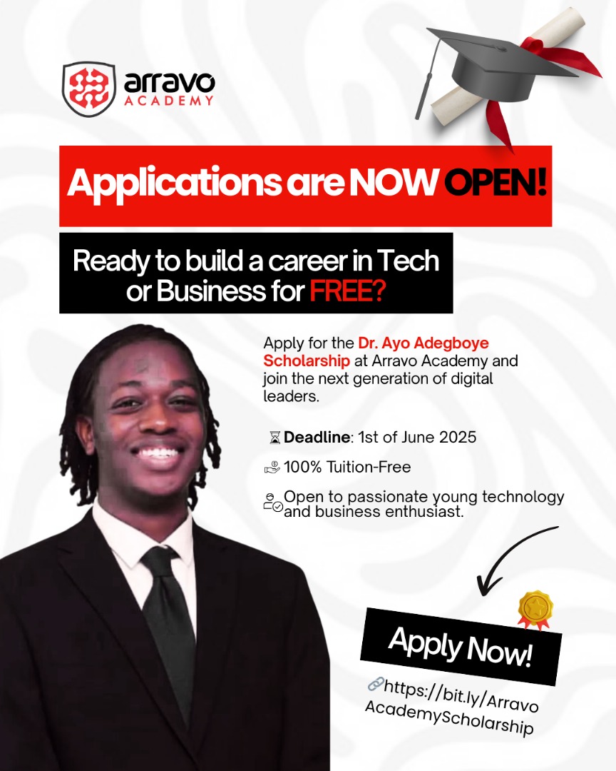 The Dr. Ayo Adegboye Scholarship is an initiative under Arravo Academy, designed to empower aspiring tech professionals by providing full and partial scholarships for IT training and job placements.